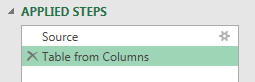 Here I’ve renamed our newly entered Step to “Table from Columns”, which is more meaningful than “Custom1”!