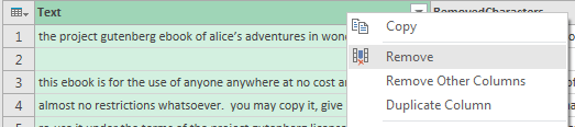 Lets remove our Text Column, as it’s no longer needed – right click on the Text Column name, and Remove.