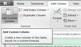 Add the following formula into the Custom Column Formula box. Remember to select a suitable name for the new Column.