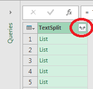 Lets Expand all of our Lists in the TextSplit Column, to convert the nested lists into one Column.