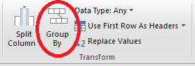 You’ll find the Group By function in the Home Ribbon, on the Transform tab.