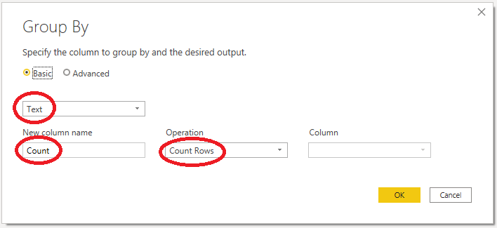 To create a Unique List of Words, we can use the Group By function to group each of the words in our Table. Additionally, we can create a count of how many times those words appear.