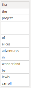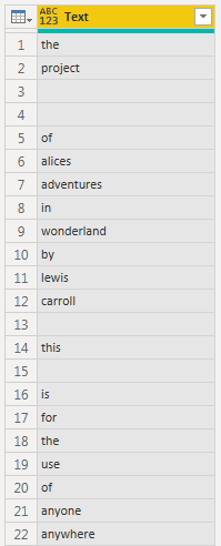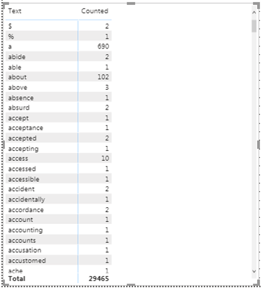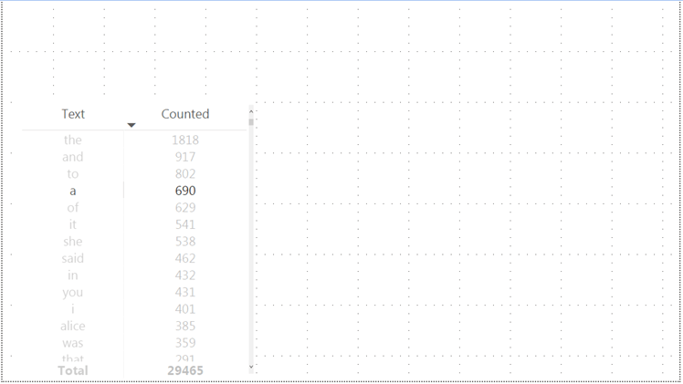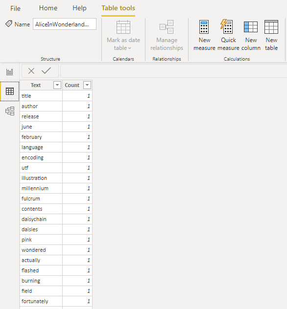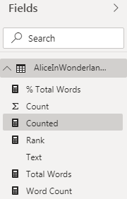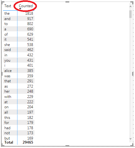 Total Words = CALCULATE([Counted],ALL(AliceInWonderlandText))