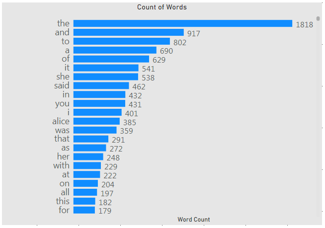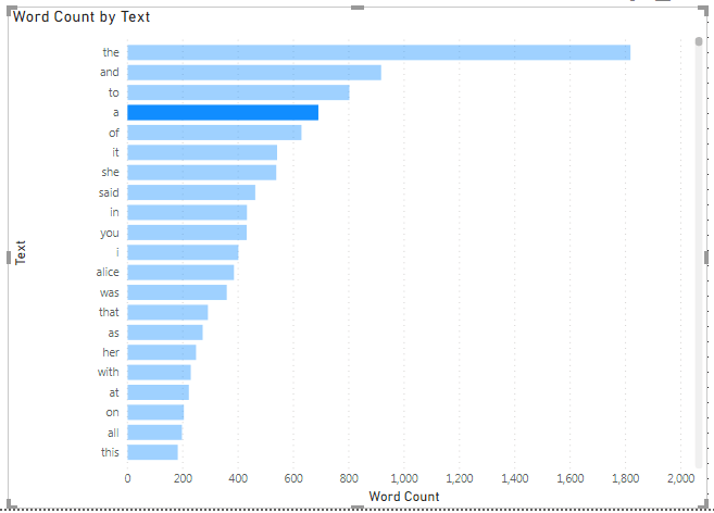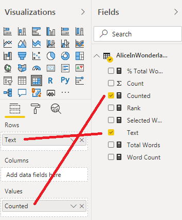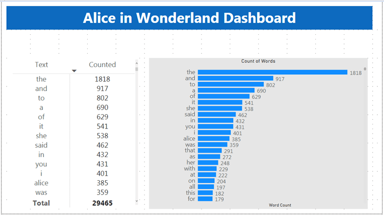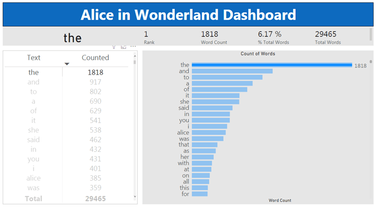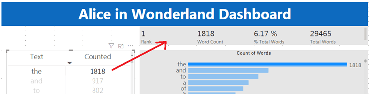 Word Count = IF(SELECTEDVALUE(AliceInWonderlandText[Word]) <> “”,[Counted],”-“)??