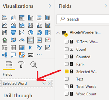 Selected Word = SELECTEDVALUE(AliceInWonderlandText[Word],” “)
