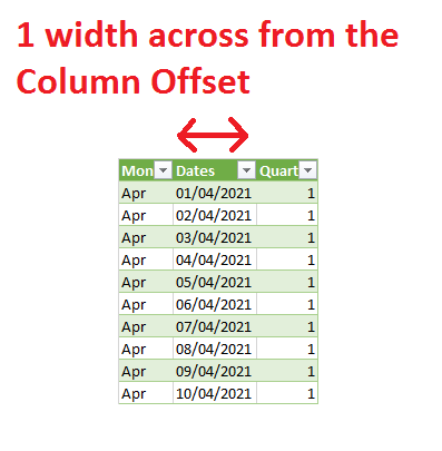 The row offset is which row we would like our dynamic range to begin from on our Date Table.