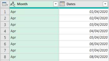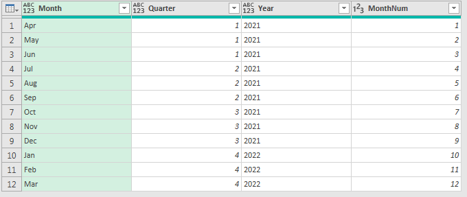 The Table will be loaded into Power Query and will be amended to the Monthly Drop Down Lists, during the creation of the Date Table.