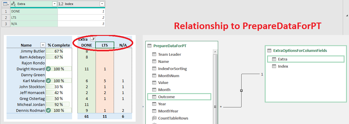 This is a Dimension Table. Its used to create a Relationship to the PrepareDataForPT Fact Table. It’s also used to create Column Headers for our Report.