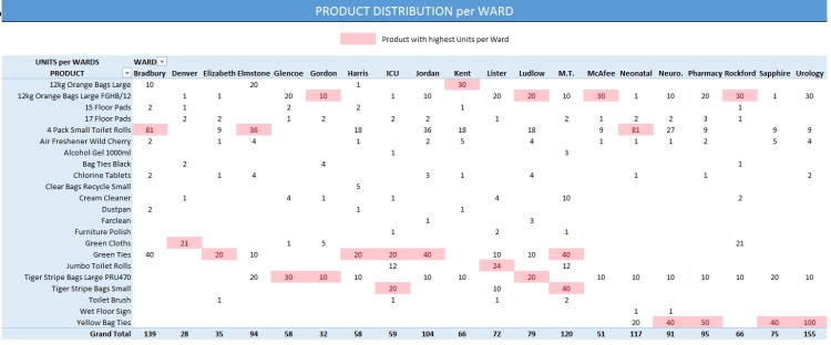 Product Distribution per Ward – to determine how many units of each Product a Ward used.