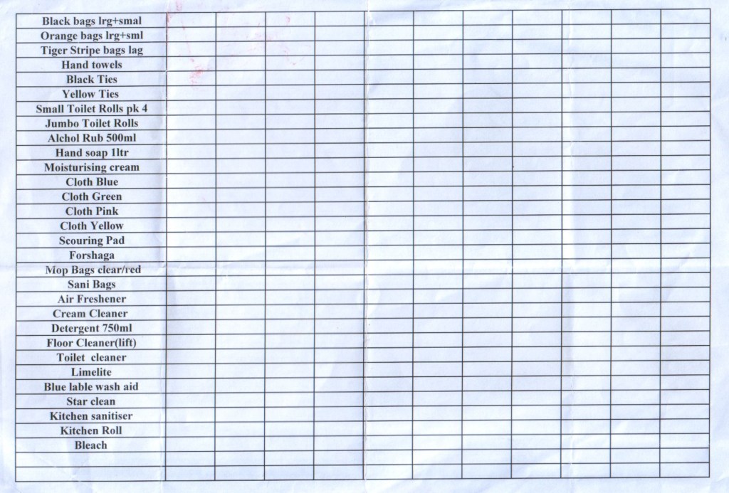 The Housekeeping Stores main task was to provide goods for the Cleaners to perform their roles, throughout all of the wards at the hospital and its perimeter buildings.